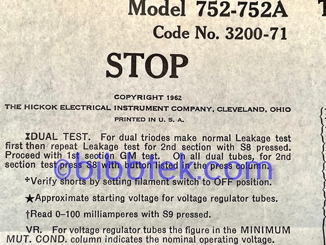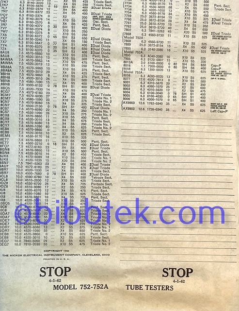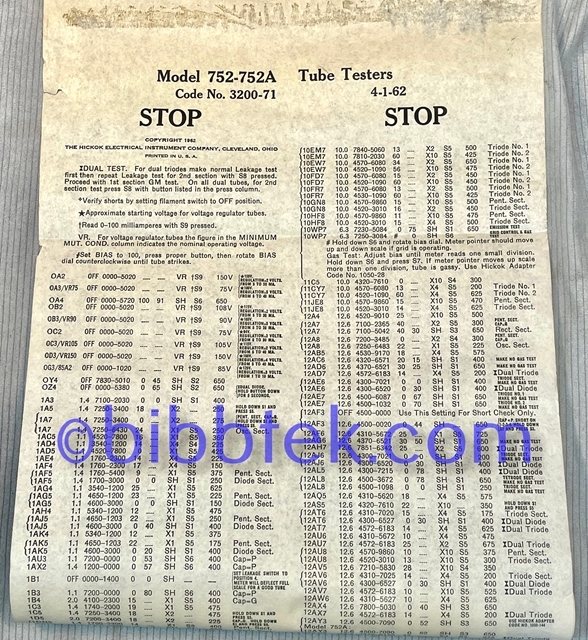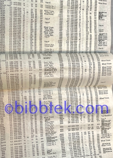 A Hickok Roll Chart for Tube Tester, with one tear that was repaired (taped) by a previous owner. Please see photos #4 & 5 for details.