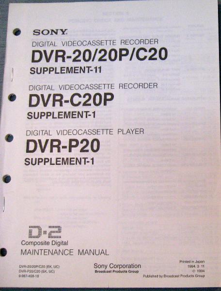 Two Supplements for Sony DVR-20/20P/C20 Supplement-11, and DVR-20,20P supplement 12. Both D2 Maintenance manuals, in good condition. Price is for the pair.