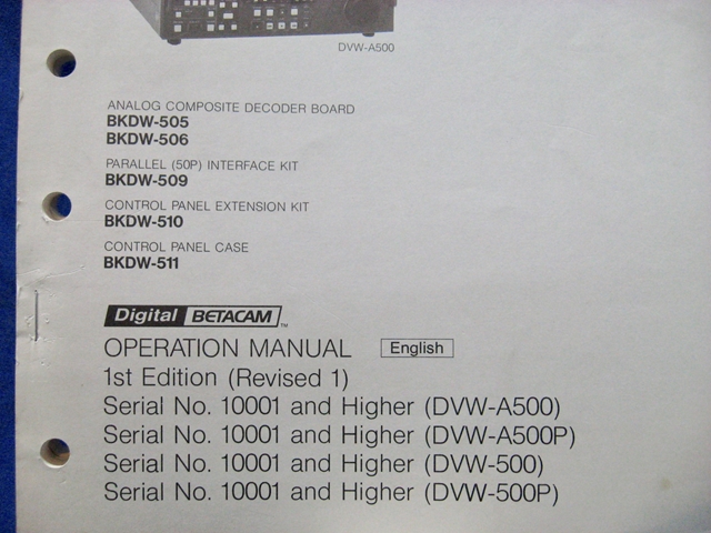 Sony DVW-A500/500/A500P/500P Operation Manual 1st Edition (Revised 4)