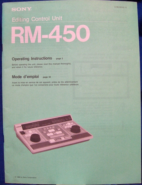 Sony RM-450 Editing Control Operation Manual. VVG Condition, in English and French, 64 pages total.