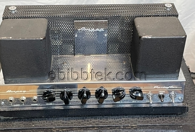 The front panel chrome and lettering are in very good condition, and there is normal wear to the chrome in the area between the transformers.  The Ampeg plexiglas is intact, and the knurled chrome nuts, tube screen and chassis bolts are original.