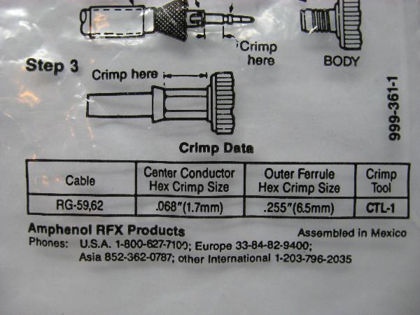 NOS Amphenol BNC Crimp plugs for RG59, RG62. Original Factory Sealed packages. Please Note Price is for 15 pieces.