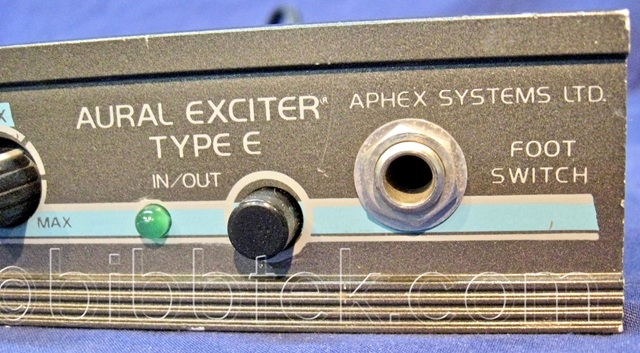 The Aphex Type E (Entertainer series) is a mono 1/2 rack unit, with front panel Foot switch and Hi Impedance input. This unit is in fair cosmetic condition, works well.