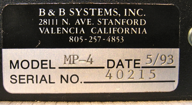 B&B Systems MP-4 Record Meter assembly: sn40215