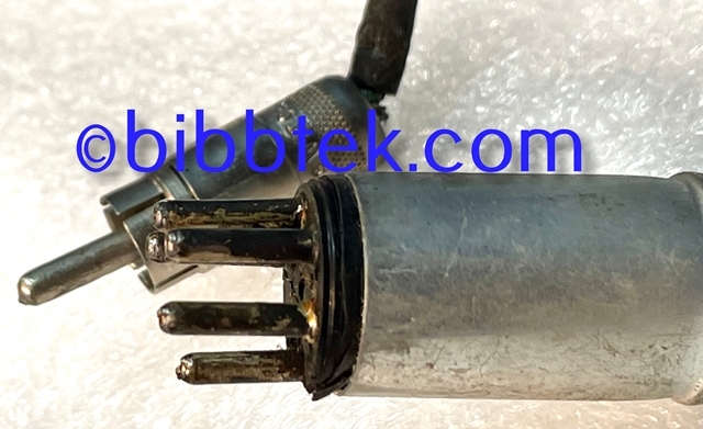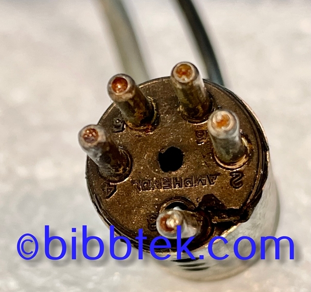 The silver plated 5 pin AMPHENOL connectors are badly tarnished on these assemblies.  This particular one has a broken base and 1 pin is unattached.