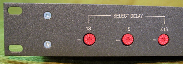 The delay time is set using 3 calibrated pots, each introducing 10x the delay of the previous one (1S, .1S, .01S).