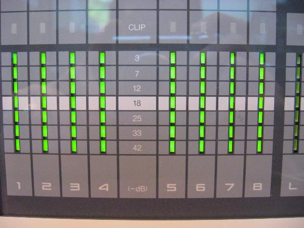 The LED display on the front panel shows input and output levels for each of the eight inputs and track outputs, plus the stereo outputs of the internal mixer.