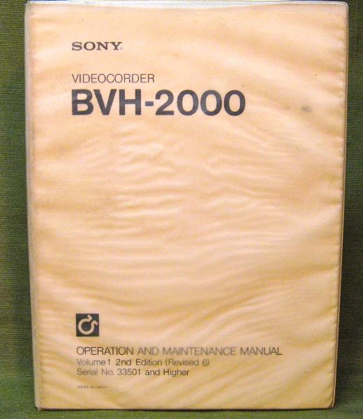 Sony BVH-2000 Videocorder Operation and Maintenance Manual Volume 1 2nd Edition (Revised 6)