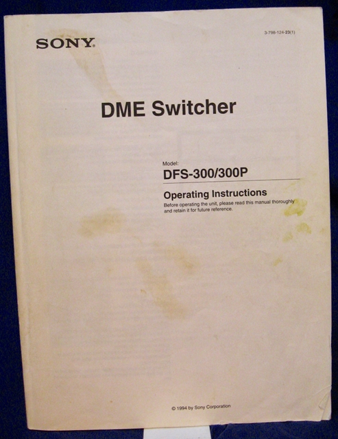 Sony DME Switcher Operating Instructions, for Model DFS-300 switcher, some stains to cover, overall VG condition.