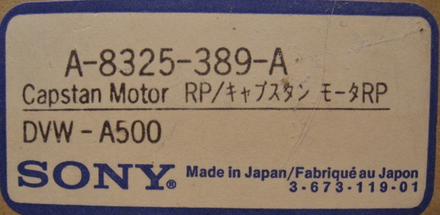Sony stock PART# A-8325-389-A, is listed as a Sony Motor Assembly (RP) capstan for the DVW-A500.