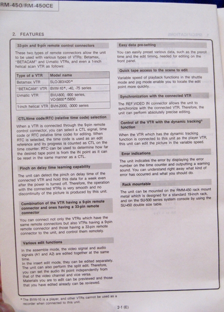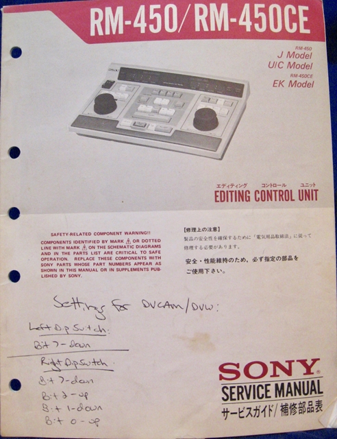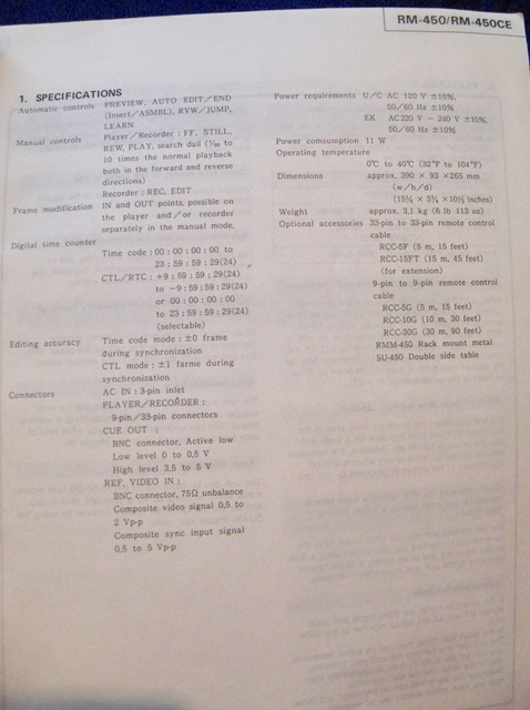 Sony RM-450 Editing Control Unit Service Manual. Good Condition, with schematics.