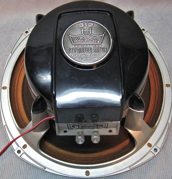University listed this model as a 3-Way Diffaxial based upon its multi-sectional mechanically crossed over cone design which formed the woofer and midrange sections.    The coaxial tweeter assembly is crossed over via a capacitor under the rear cover.